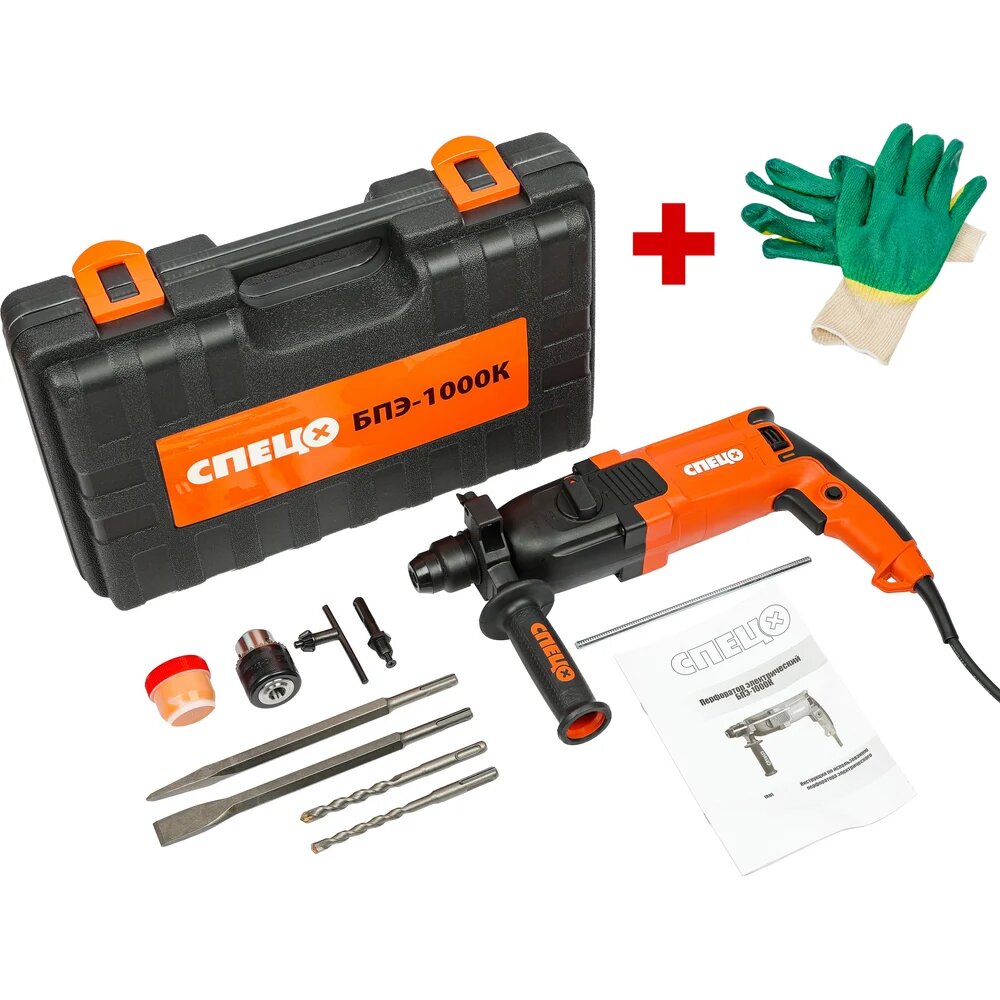 Спец Набор Перфоратор БПЭ-1000К, SDS+,1000Вт, 3,4Дж, 3+1режима, 0-1000об/мин, 4200уд/мин, кл патрон с адаптером, набор буров/пик, смазка, кейс + перчатки СПЕЦ-4166/И-8076-И: сравнение цен, характеристики, фото, актуальное наличие и цены.