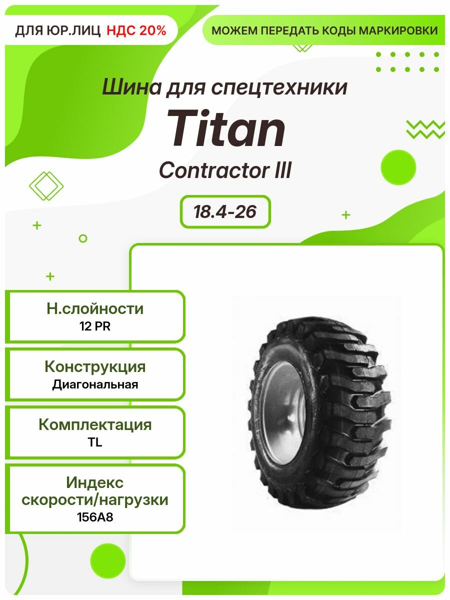 Купить Спец шина, Titan Contractor III, 18.4-26, 156A8, TL с доставкой по всей России. Спец шина, Titan Contractor III, 18.4-26, 156A8, TL: сравнение цен, характеристики, фото, актуальное наличие и цены.