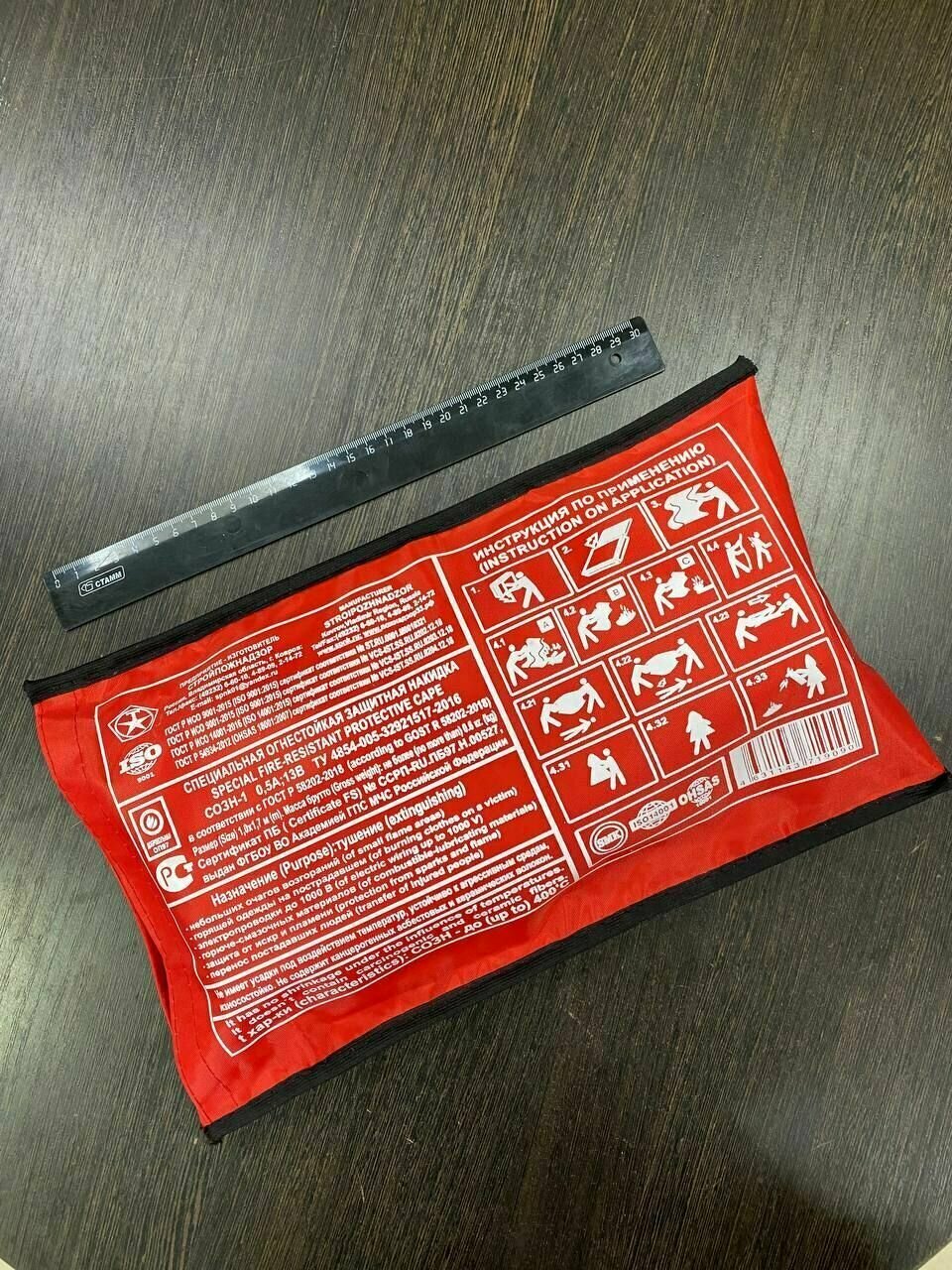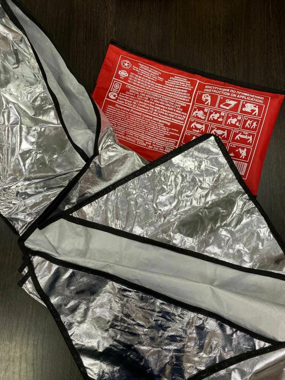 Специальная огнестойкая защитная накидка (в соответствии с ГОСТ 58202-2018) - средство индивидуальной защиты, кожных покровов человека от воздействия открытого пламени, теплового потока и контакта с нагретыми поверхностями, а также для защиты повседневной одежды от возгорания, для тушения очагов возгорания в качестве противопожарного покрывала, для переноски пострадавших и людей с ограниченной подвижностью в качестве носилок при эвакуации во время пожара.