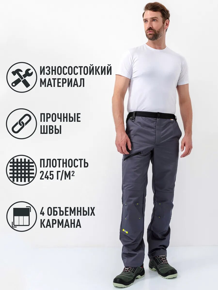 Спецодежда мужская, брюки рабочие мужские Бисер, серые, размер 44-46, рост 158-164