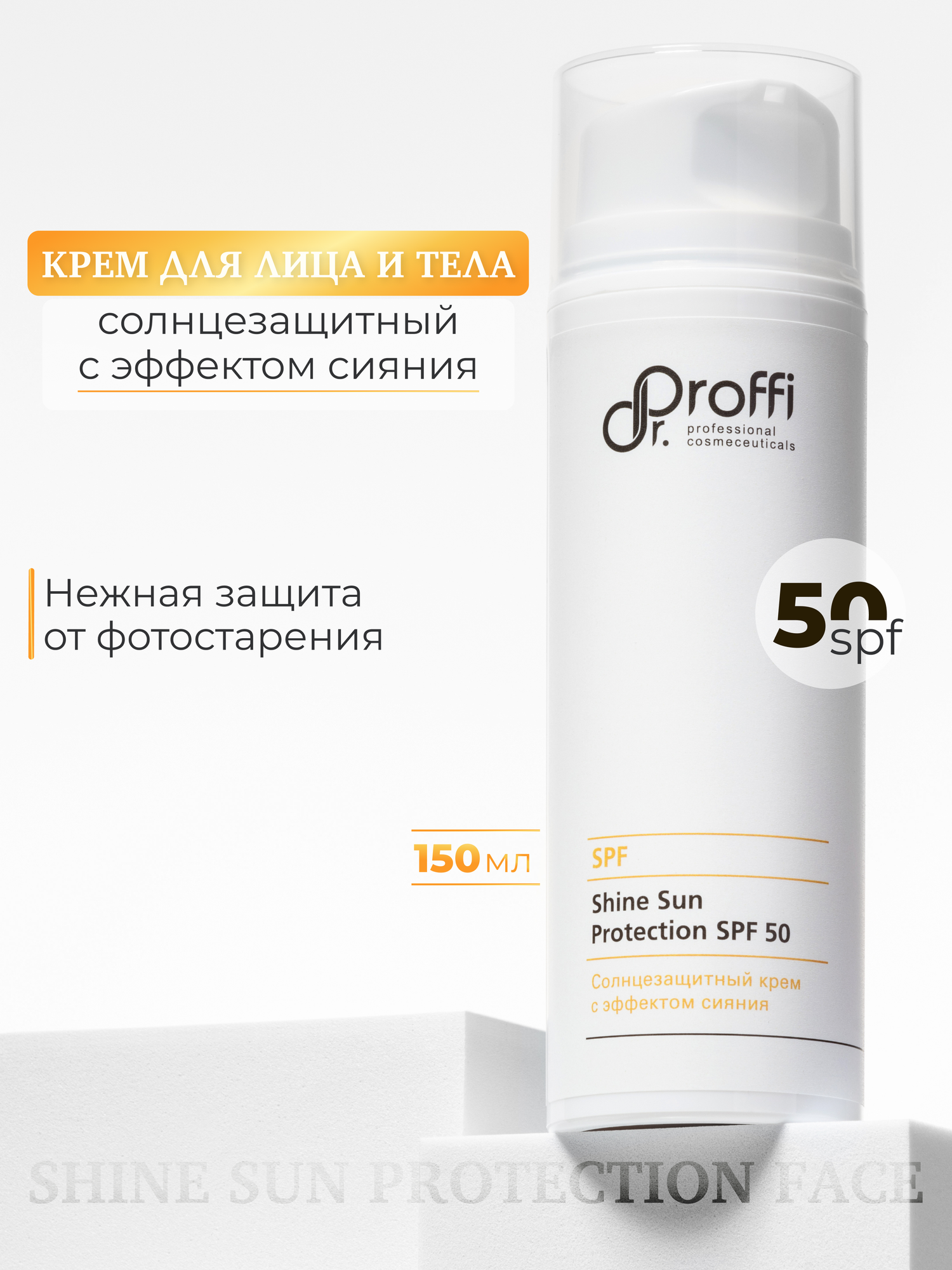 Купить SPF 50 Солнцезащитный крем для лица и тела с эффектом сияния 150 мл Dr.Proffi Sun Shine Protection с доставкой по всей России.