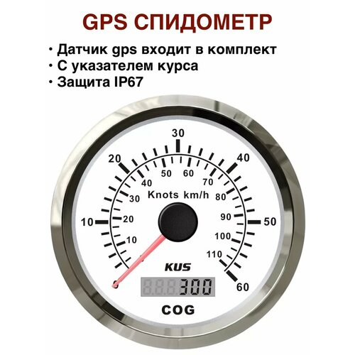 Многофункциональный GPS спидометр со встроенным указателем курса для катера, лодки, вездехода. GPS датчик входит в комплект. Не требует подключения трубки Пито, отображает информацию с момента подключения питания.