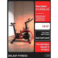 Маховик Stufenlos весом 18 кг создает исключительно плавный ход, максимально имитирующий езду на профессиональном велосипеде. Этот элемент конструкции гарантирует стабильность и реалистичные ощущения при каждом обороте педалей, обеспечивая комфортные и эффективные тренировки.