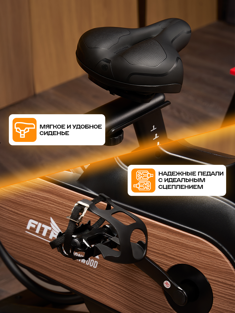 Спинбайк FITRONIX «CARBON WOOD», для дома, магнитный, 8 программ, LCD-экран, 39 кг, велотренажер спинбайк