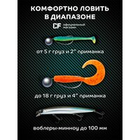 - Превосходная работа удилища на вываживании и отличные бросковые качества бланка.