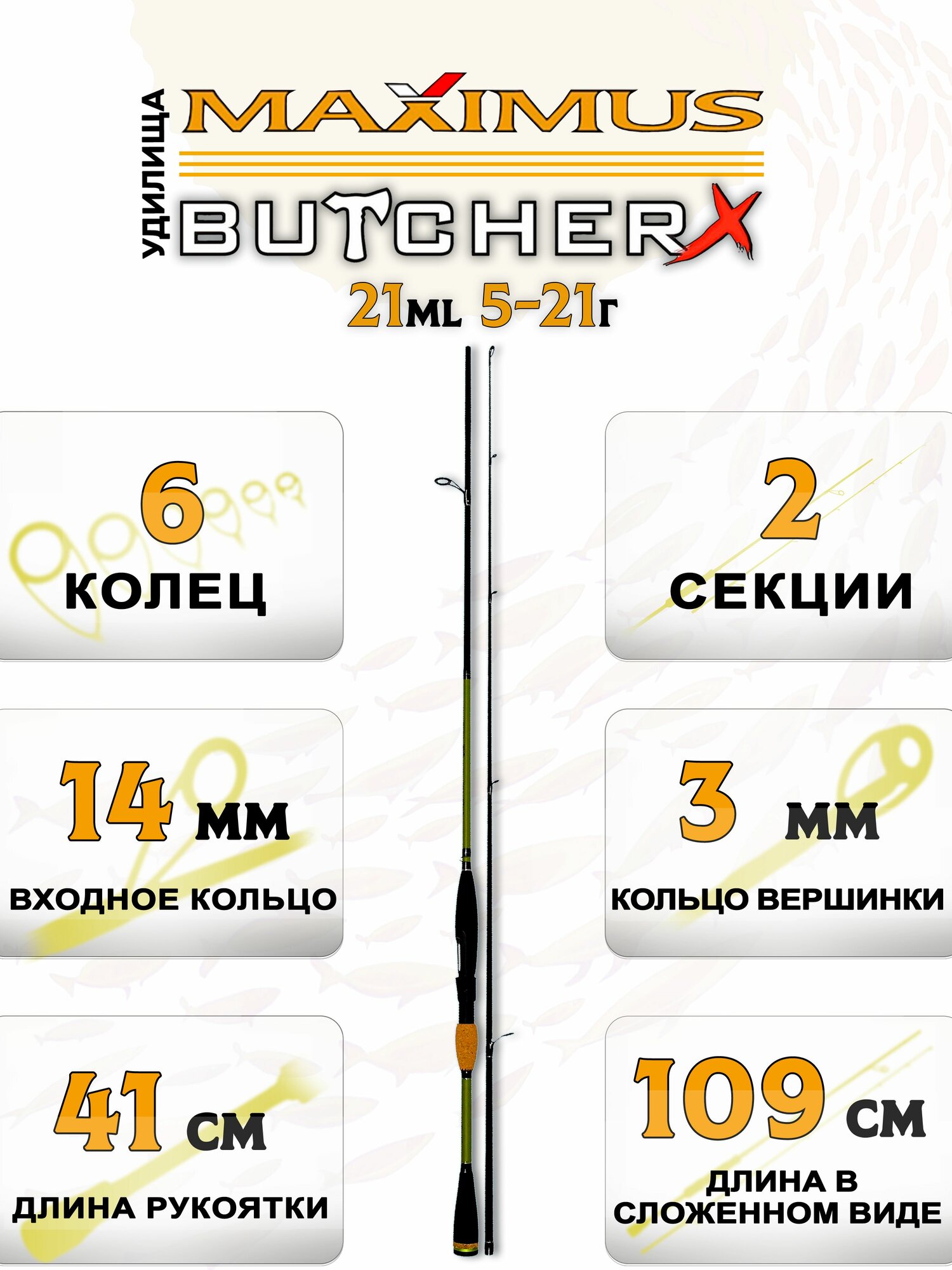 Купить Спиннинг для рыбалки Maximus BUTCHER-X 21ML 2,1m 5-21 грамм с доставкой по всей России. Спиннинг для рыбалки Maximus BUTCHER-X 21ML 2,1m 5-21 грамм: сравнение цен, характеристики, фото, актуальное наличие и цены.