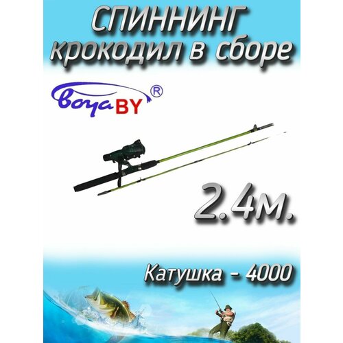 Спиннинг Крокодил BoyaBY - это готовый оснащенный набор для рыбалки, который включает в себя 2-х частный штекерный спиннинг длиной 2.4 метра, катушку Cobra 4000 с 4 подшипниками, леску монофильную Игуана 0.30 и поводок с 2-3 крючками.