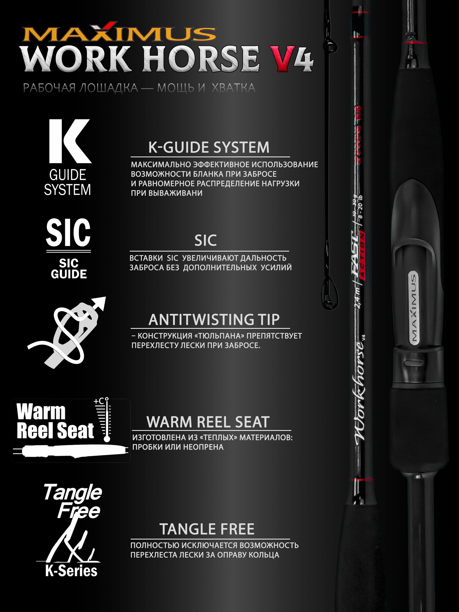 Спиннинг Maximus WORKHORSE V4 24H 2,4m 30-60g спиннинг для рыбалки, удилище: сравнение цен, характеристики, фото, актуальное наличие и цены.