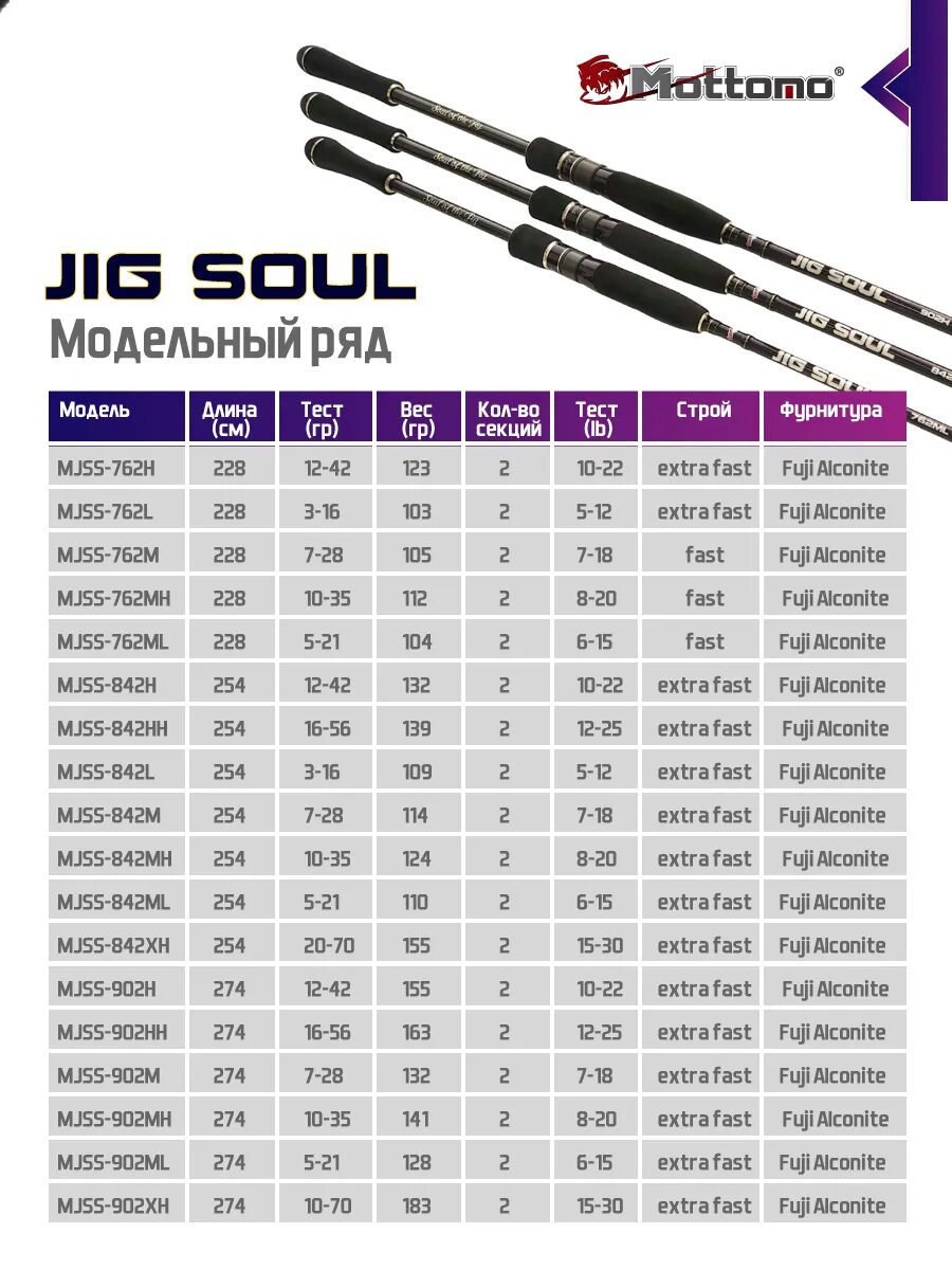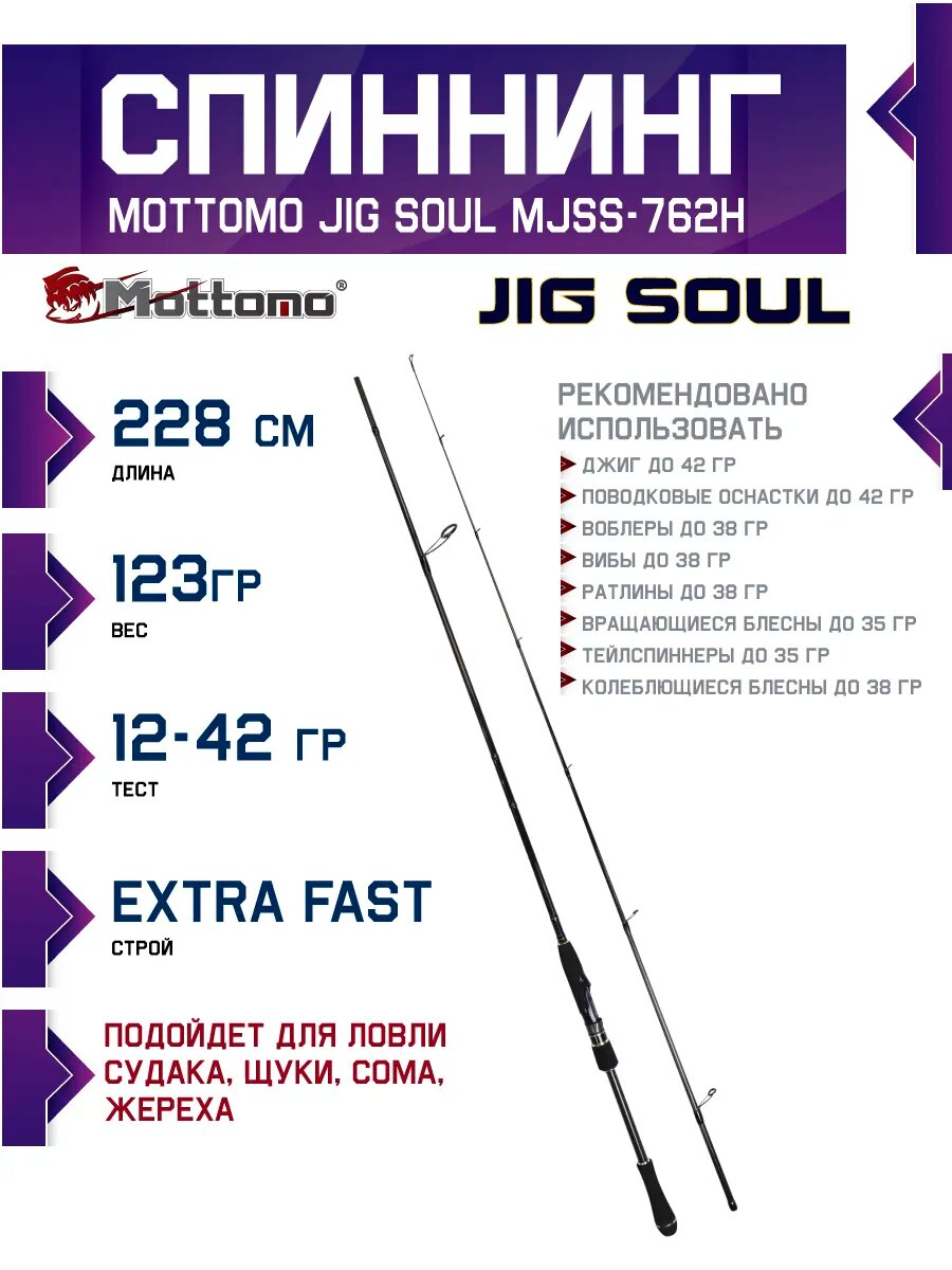 Купить Спиннинг Mottomo для рыбалки Jig Soul 762H 228см/12-42g для джига с доставкой по всей России. Спиннинг Mottomo для рыбалки Jig Soul 762H 228см/12-42g для джига: сравнение цен, характеристики, фото, актуальное наличие и цены.