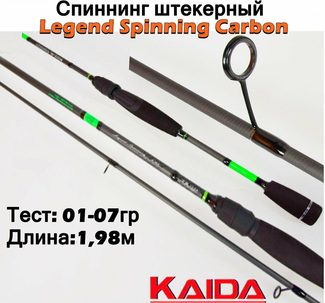 Спиннинг Kaida Legend - качественное бюджетное удилище которое подойдет как для начинающего рыбака, так и для опытного. Лучше всего подойдет для спиннингистов, осваивающих основы ультралайтовой ловли при таких способах как твичинг и микроджиг. Длина удилища составляет 198см, а вес 80г. Транспортировочная длина 105см, количество колен 2. Тест от 1-7г.