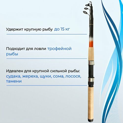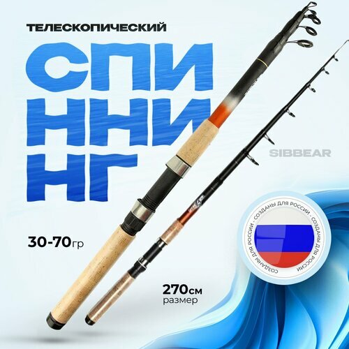 Телескопический спиннинг SIBBEAR "Mars", 240 см 30-60 гр, стеклопластик, пробковая ручка