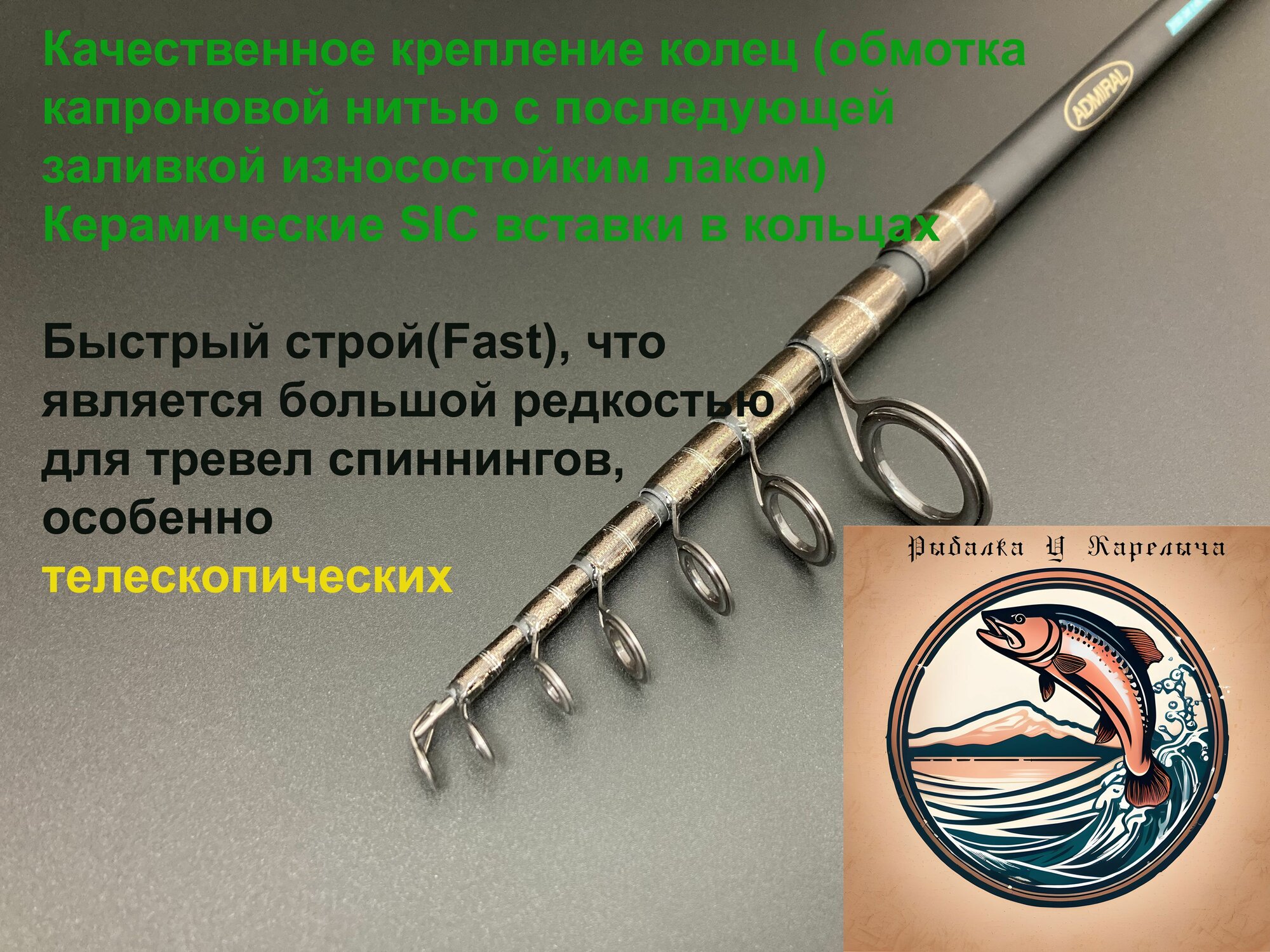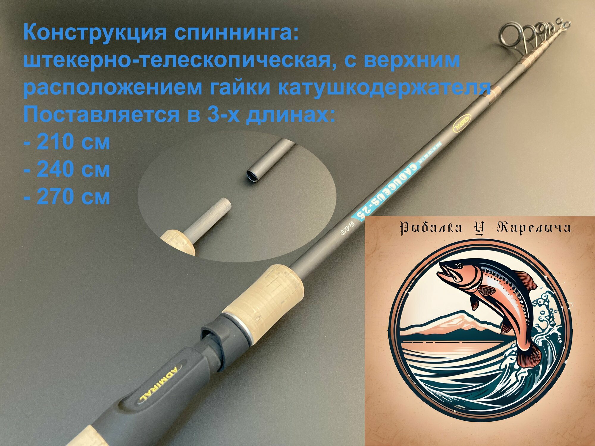 Спиннинг штекерно-телескопический Admiral Caduceus, настоящего быстрого строя, очень лёгкий и компактный, пропускают даже в победу, в ручную кладь, длина вместе с тубусом всего 50см, незаменим в дальних поездках, когда хочется взять с собой компактный спиннинг и получить прекрасные впечатления от рыбалки. Тесты соответствуют. Материал бланка карбон.