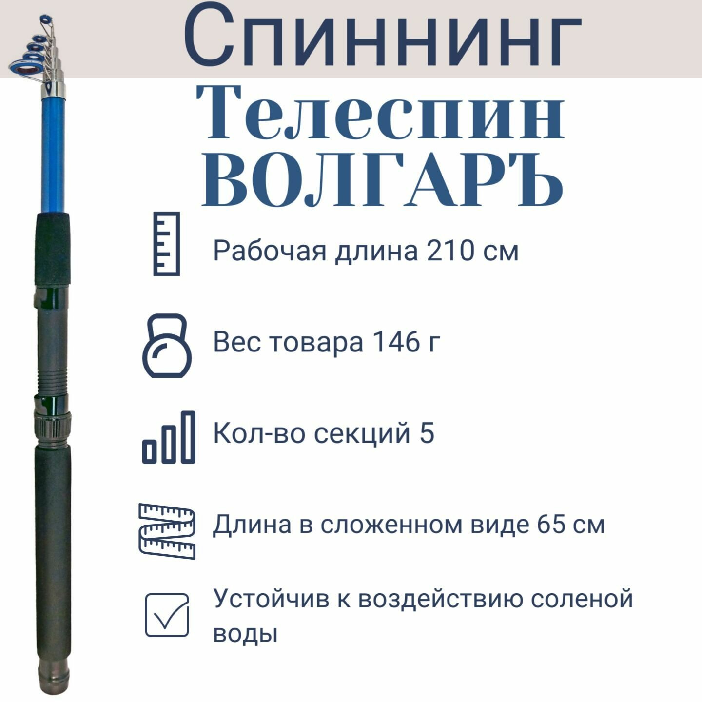 Спиннинг телескопический «Волгаръ» тест 5-30гр 2.1м (5 секций) (стекловолокно),: сравнение цен, характеристики, фото, актуальное наличие и цены.