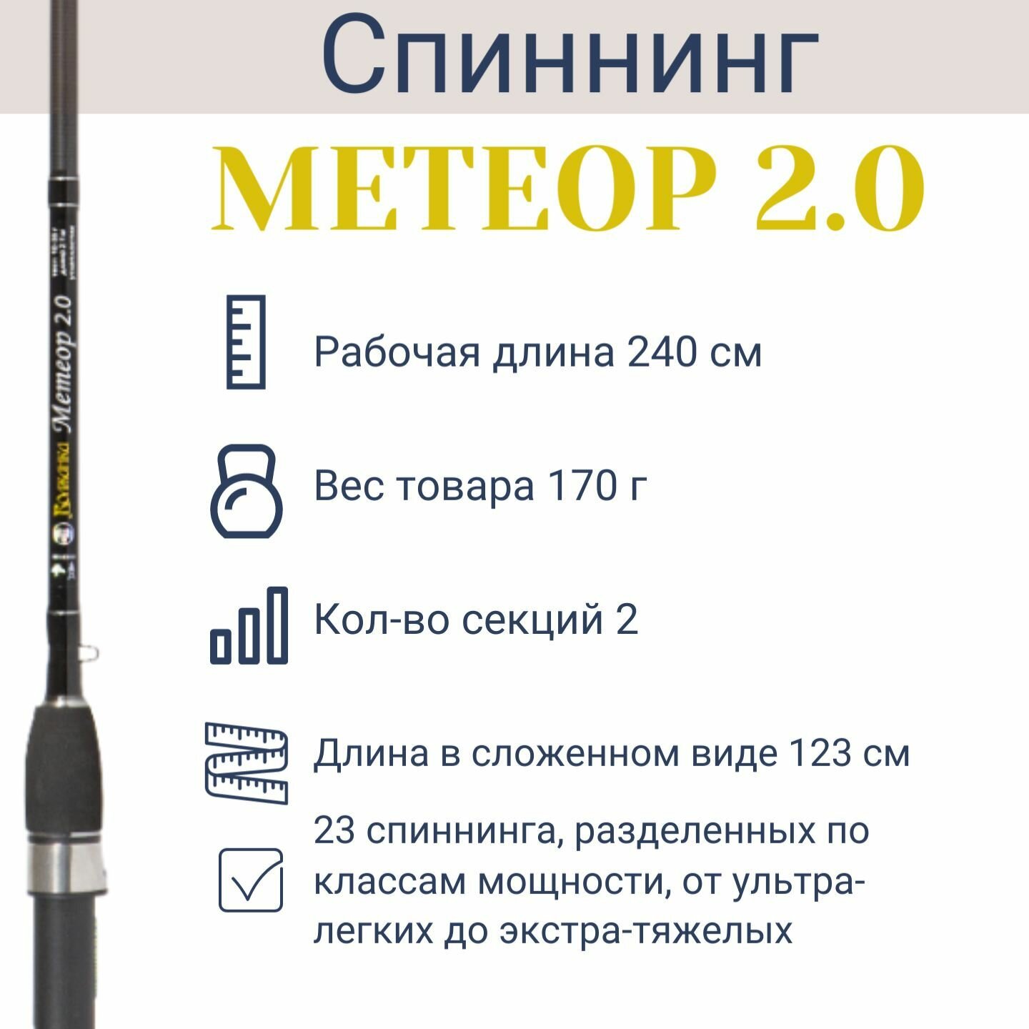 Купить Спиннинг «Волжанка Метеор 2.0» тест 4-16гр 2.4м (2 секции) с доставкой по всей России.