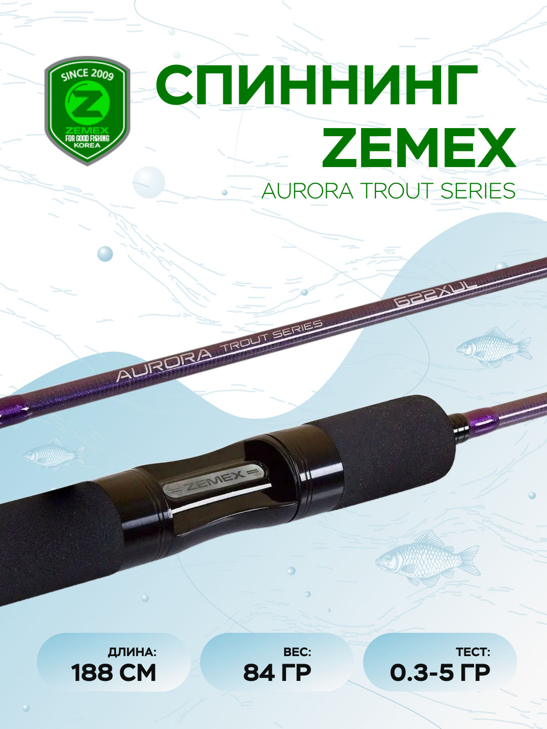 Спиннинг ZEMEX 24 AURORA TROUT SERIES 622XUL 0.3-5 g, 1.88м, штекерный, 2 секции, макс. тест 5г: сравнение цен, характеристики, фото, актуальное наличие и цены.