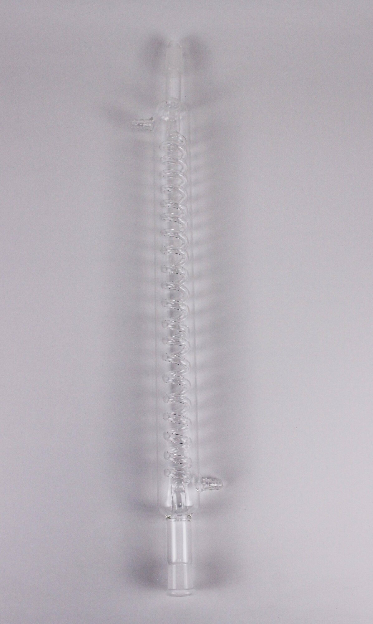 Спиральный холодильник 5drops, 300 мм, шлифы 19/26 – это стеклянный дистиллятор обладающий высокой производительностью, благодаря длине в 400 мм, он используется в лабораторных исследованиях и промышленности при конденсации паров с их охлаждением для последующего перехода в жидкую форму. Спиральный холодильник состоит из стеклянной внешней трубки с помещённой внутрь спиралью, его корпус оснащён двумя впаянными отводами. Он выполнен из особо прочного лабораторного стекла, поэтому имеет меньшие размеры и лучшие теплотехнические характеристики в отличие от металлических дистилляторов.