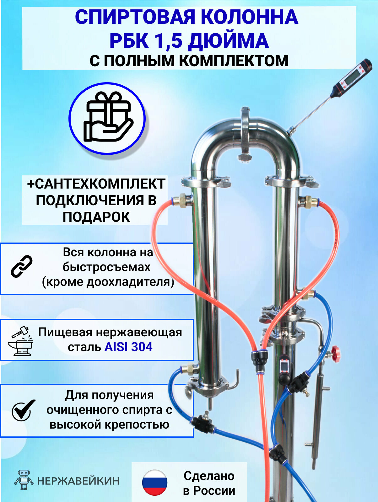 Купить Спиртовая колонна «РБК» на 1,5 дюйма с комплектом подключения с доставкой по всей России. Спиртовая колонна «РБК» на 1,5 дюйма с комплектом подключения: сравнение цен, характеристики, фото, актуальное наличие и цены.