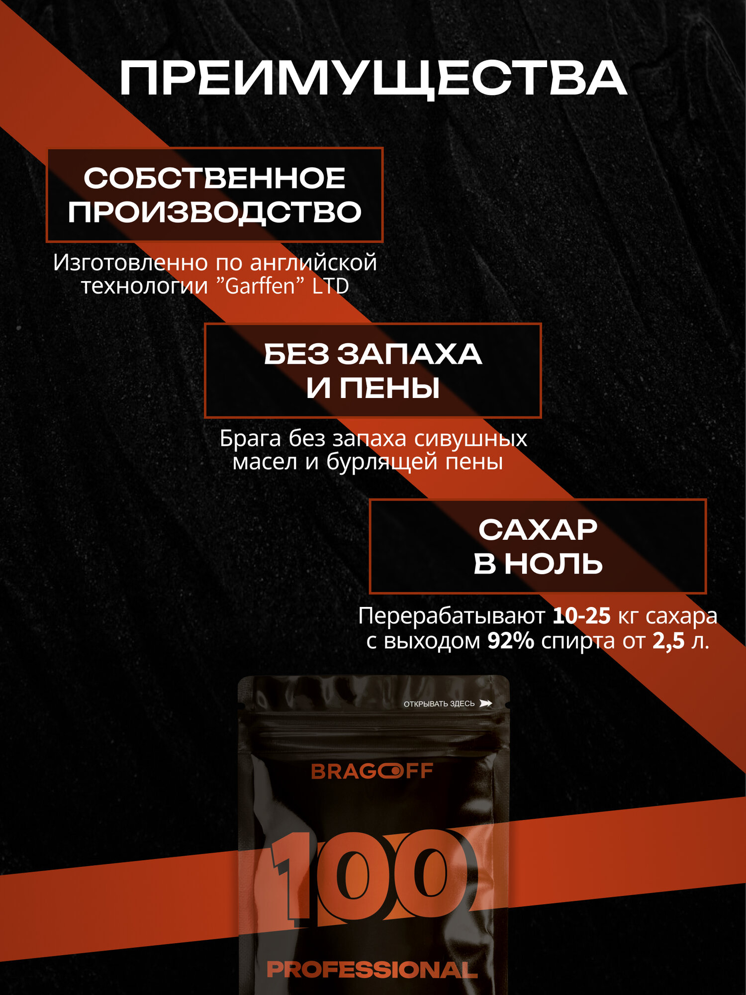 Турбо дрожжи Bragoff 100 Professional не содержат ГМО, ароматизаторов и консервантов, что делает их безопасными для использования.