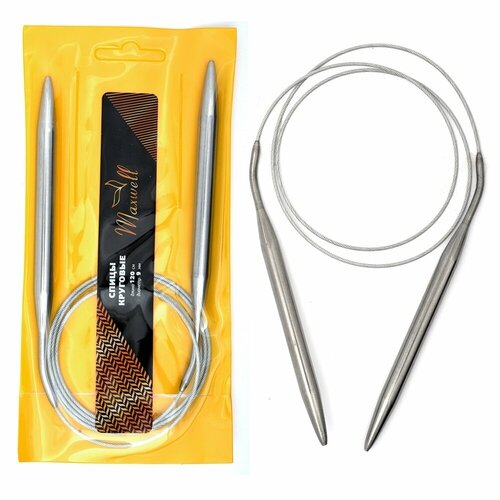 Круговые спицы для вязания на тросике Maxwell Gold. Металл тщательно отполирован, что способствует лёгкому скольжению пряжи по её поверхности. Носик спицы изящно скруглён и удобен для комфортного вязания. Круговые спицы подходят для вязания различных деталей одежды, создания широкого полотна, для вязания шарфов и шапок, горловины, высоких воротников, изготовления одежды для игрушек и других вещей, не имеющих швов и любых вещей в круговой технике. Данные спицы имеют высокую прочность, легкий вес и отлично подходят для всех видов пряжи, в особенности акрила, шерсти и полушерсти. Рукоделие для женщин переходит на новый уровень удобства и комфорта. Набор спиц может стать отличным подарком на праздник любимой маме, бабушке или подруге.