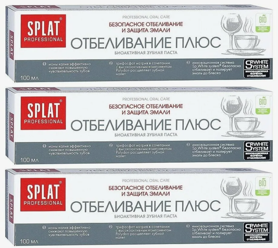 Купить Зубная паста SPLAT Professional отбеливание плюс, 100 мл, 3 шт с доставкой по всей России. Зубная паста SPLAT Professional отбеливание плюс, 100 мл, 3 шт: сравнение цен, характеристики, фото, актуальное наличие и цены.