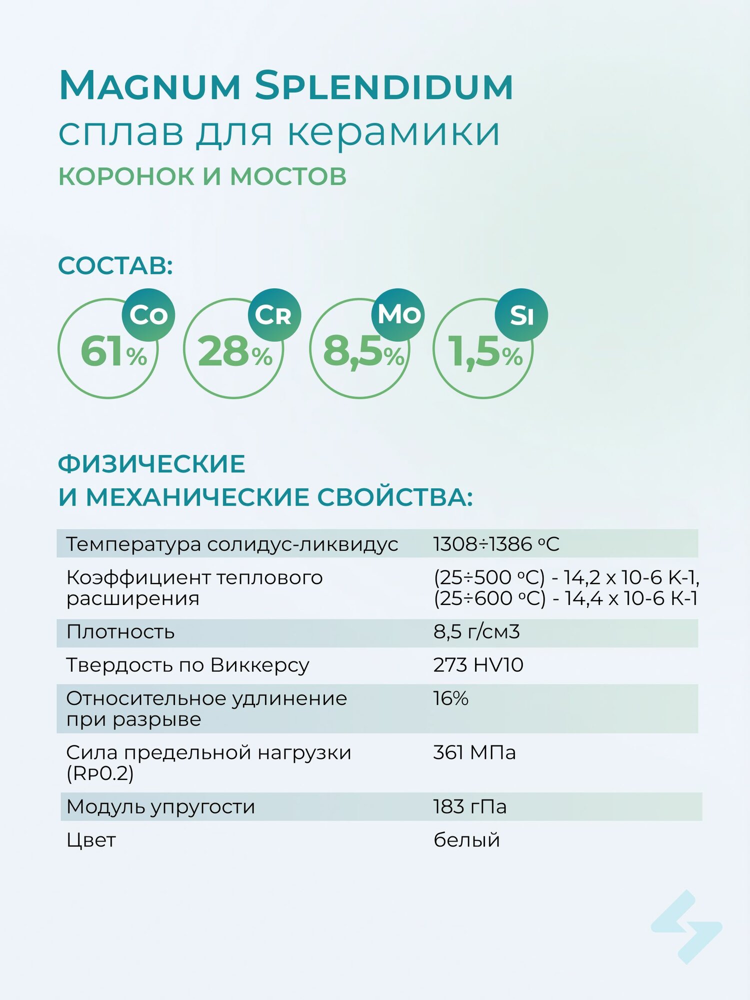 Купить Сплав Magnum Splendidum для керамики, Co (61%), Cr (28%), 1кг, без бериллия Mesa Меса с доставкой по всей России. Сплав Magnum Splendidum для керамики, Co (61%), Cr (28%), 1кг, без бериллия Mesa Меса: сравнение цен, характеристики, фото, актуальное наличие и цены.