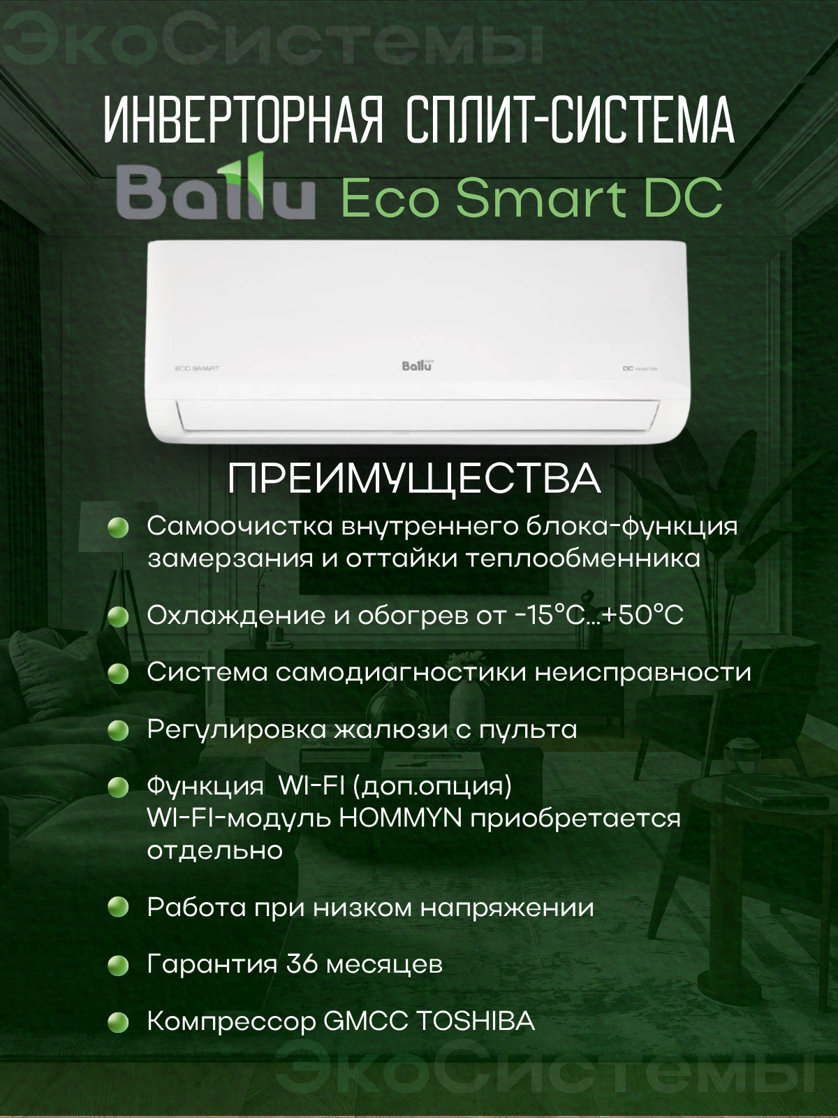 | Дополнительные функции | Follow me, автоперезапуск, самодиагностика, самоочистка внутреннего блока, система против образования льда |