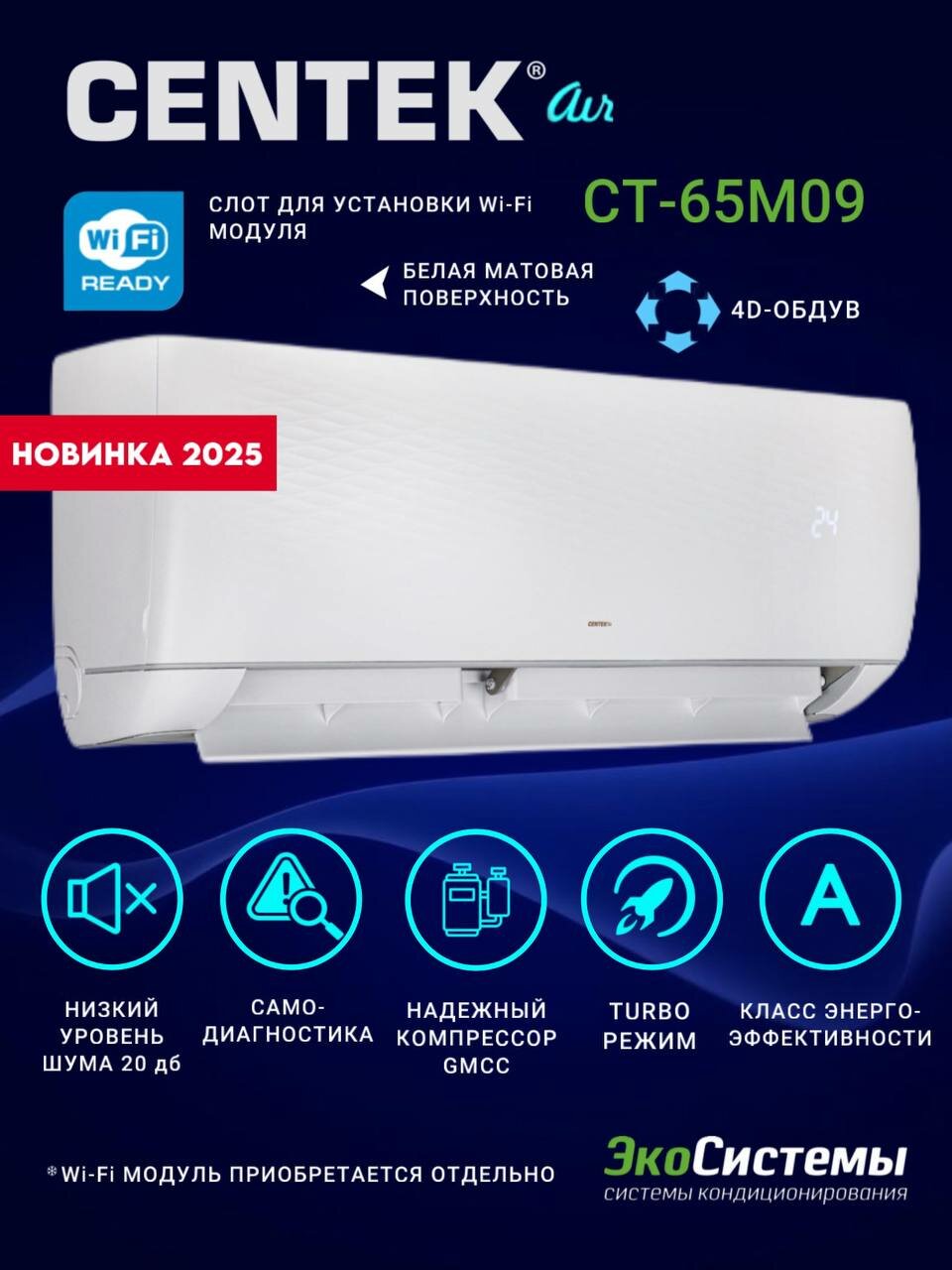 Сплит система Centek CT-65M09 матовый до 30 кв. м. / wi-fi опция / 4D жалюзи: сравнение цен, характеристики, фото, актуальное наличие и цены.