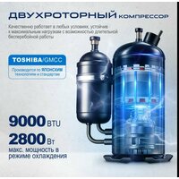 индикация работы, пульт ДУ, регулировка направления воздушного потока, таймер включения/выключения, управление со смартфона