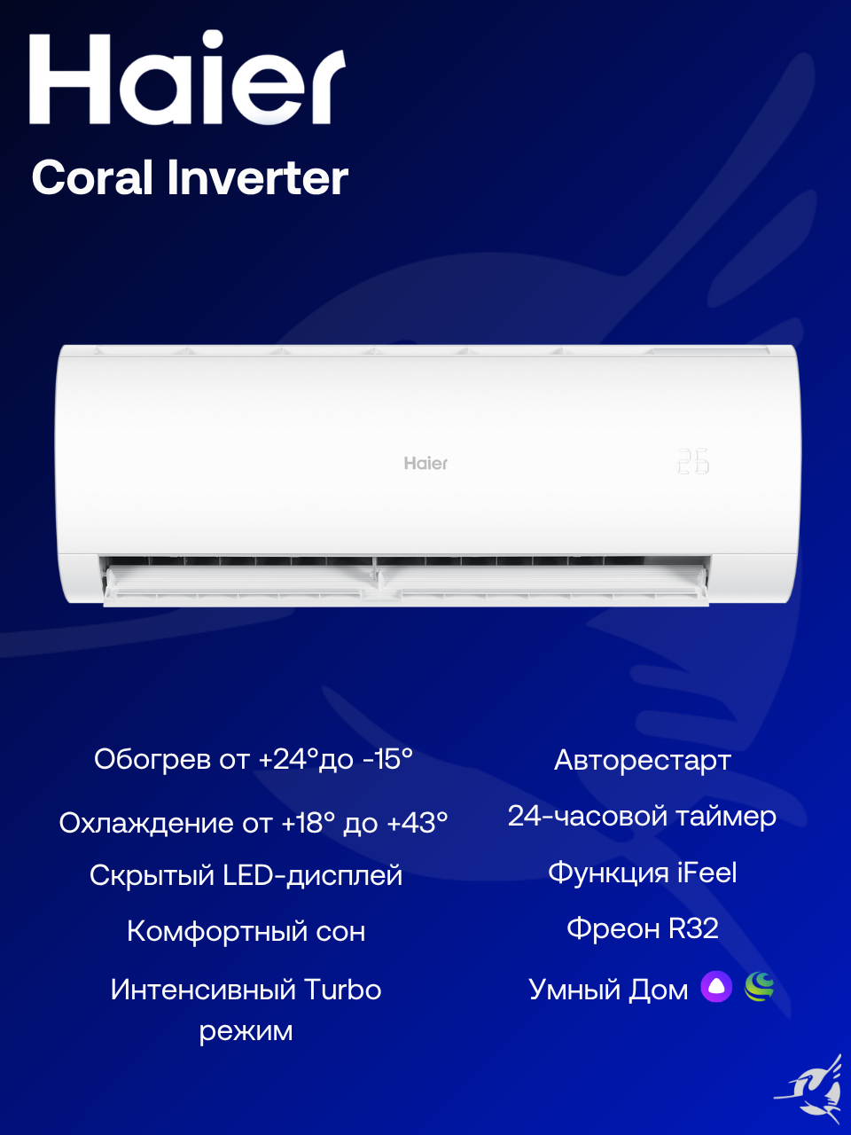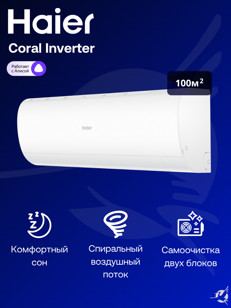 Инверторная сплит-система Haier Coral DC-Inverter AS100HPL1HRA / 1U105S2SS2FA на 100 м²: сравнение цен, характеристики, фото, актуальное наличие и цены.