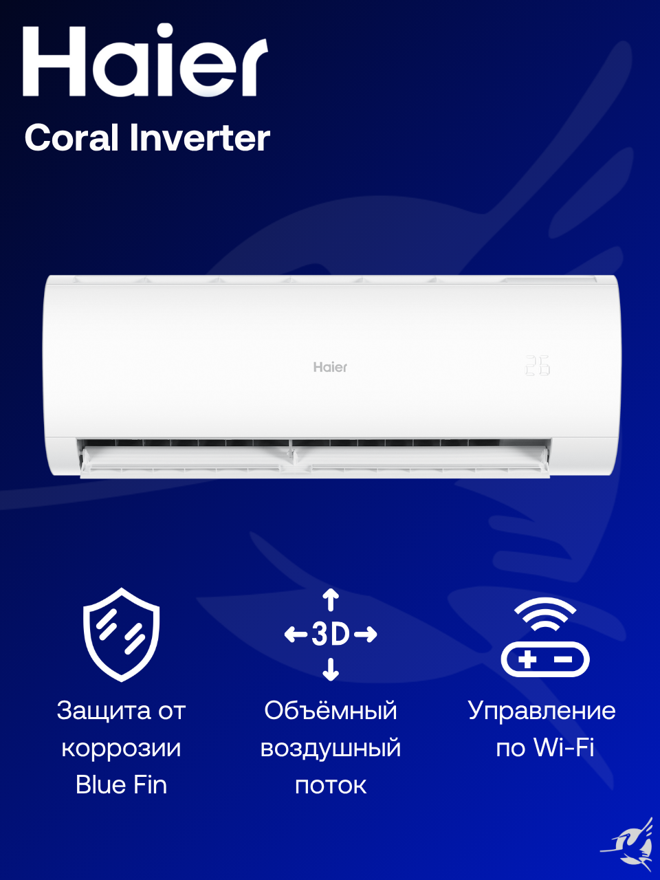 Купить Инверторная сплит-система Haier Coral DC-Inverter AS100HPL1HRA / 1U105S2SS2FA на 100 м² с доставкой по всей России.