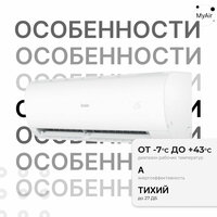 | Особенности | датчик движения, датчик качества воздуха, дисплей, зимний комплект, индикация работы, пульт ДУ, регулировка направления воздушного потока, таймер включения/выключения, тепловой насос, управление со смартфона |