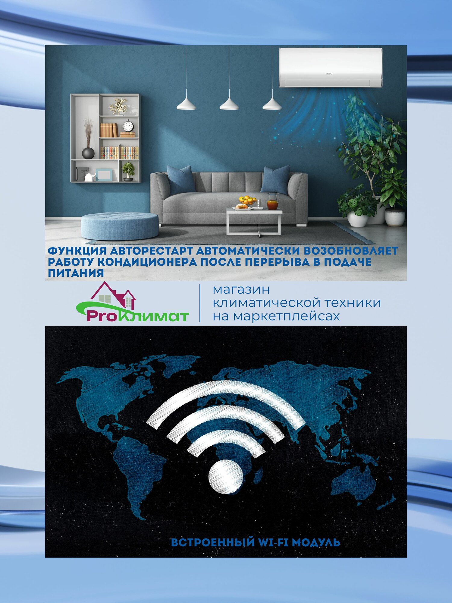 Удаленное включение и управление кондиционером Wi-Fi Низкий уровень шума внутреннего блока 22 дБА Антибактериальный фильтр Высокий класс энергоэффективности А Комфортный сон Длинный воздушный поток 12 м. Интеллектуальное оттаивание Скрытый LED-дисплей Используются компрессоры таких известных марок как: Hitachi-Highly, Sanyo, Rechi AG+ покрытие испарителя Самодиагностика «Теплый» запуск Режим осушения