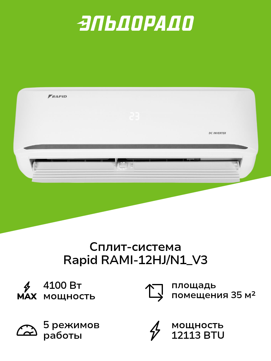 Сплит-система (инвертор) Rapid RAMI-12HJ/N1_V3: сравнение цен, характеристики, фото, актуальное наличие и цены.
