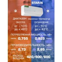 Сплит-система 9 Rovex ABS-09HE Star N, инверторный, белый, площадь 27 кв. м: сравнение цен, характеристики, фото, актуальное наличие и цены.