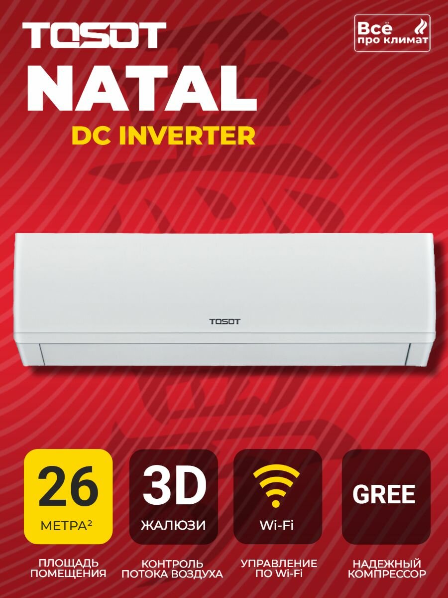 Сплит-система инверторного типа TOSOT Natal DC T09H-SNE/I/T09H-SNE/O – это современное решение для создания комфортного климата в вашем доме или офисе. Кондиционер идеально подходит как для охлаждения, так и для обогрева помещений, обеспечивая высокую энергоэффективность благодаря инверторной технологии.