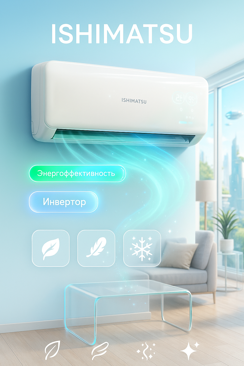 | Дополнительные функции | автоперезапуск, разморозка внешнего блока, самодиагностика, самоочистка внутреннего блока, система против образования льда, теплый пуск |