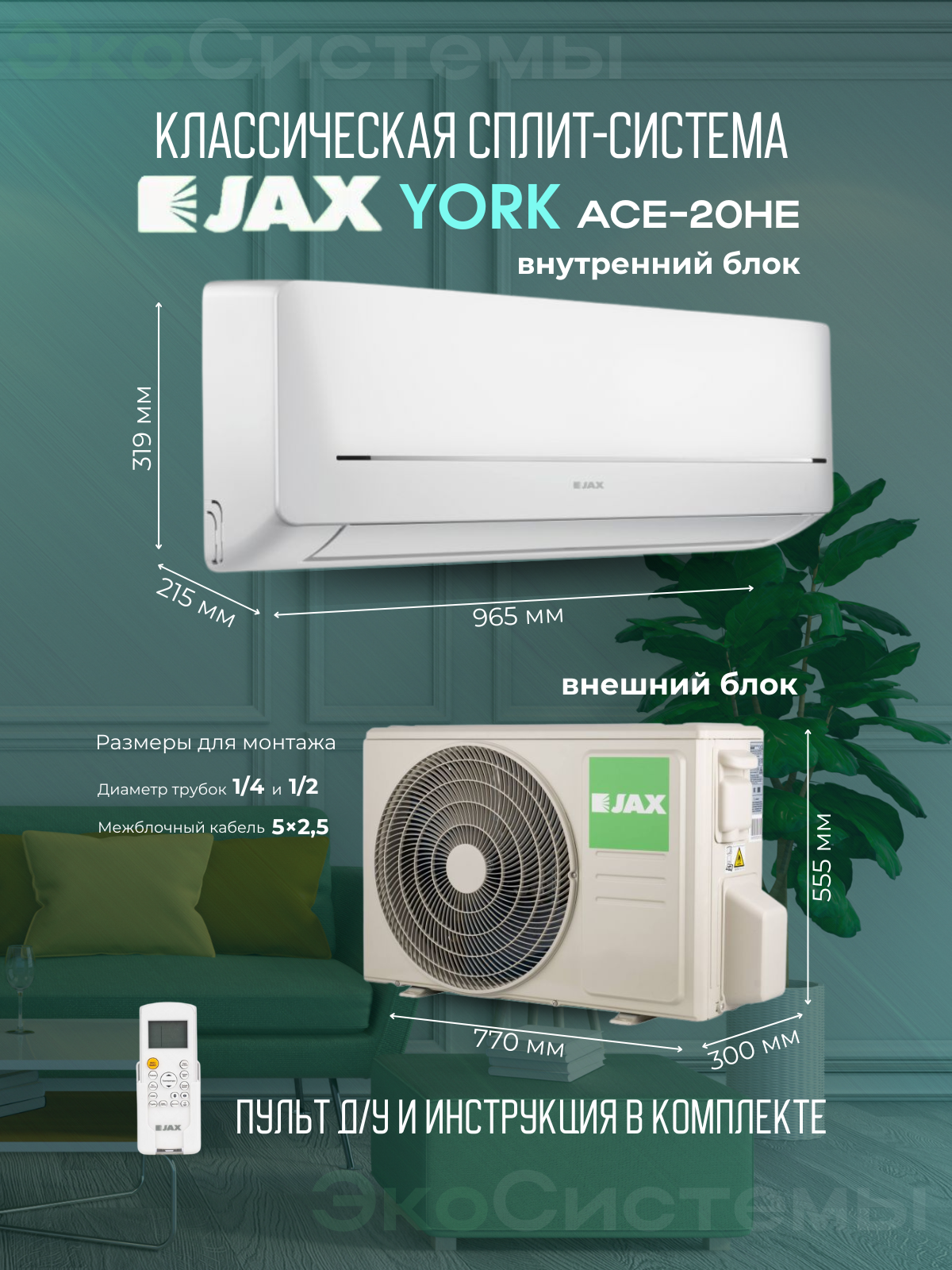 Сплит система Jax ACE-20HE YORK (Midea) до 55 м2, Wi-fi опция, 3D жалюзи