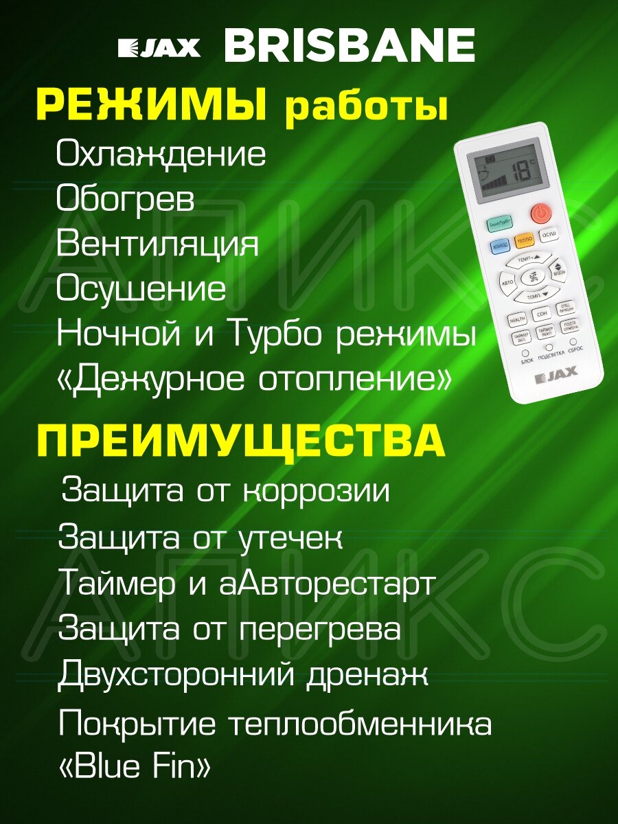 | Особенности | дисплей, пульт ДУ, регулировка направления воздушного потока, таймер включения/выключения |