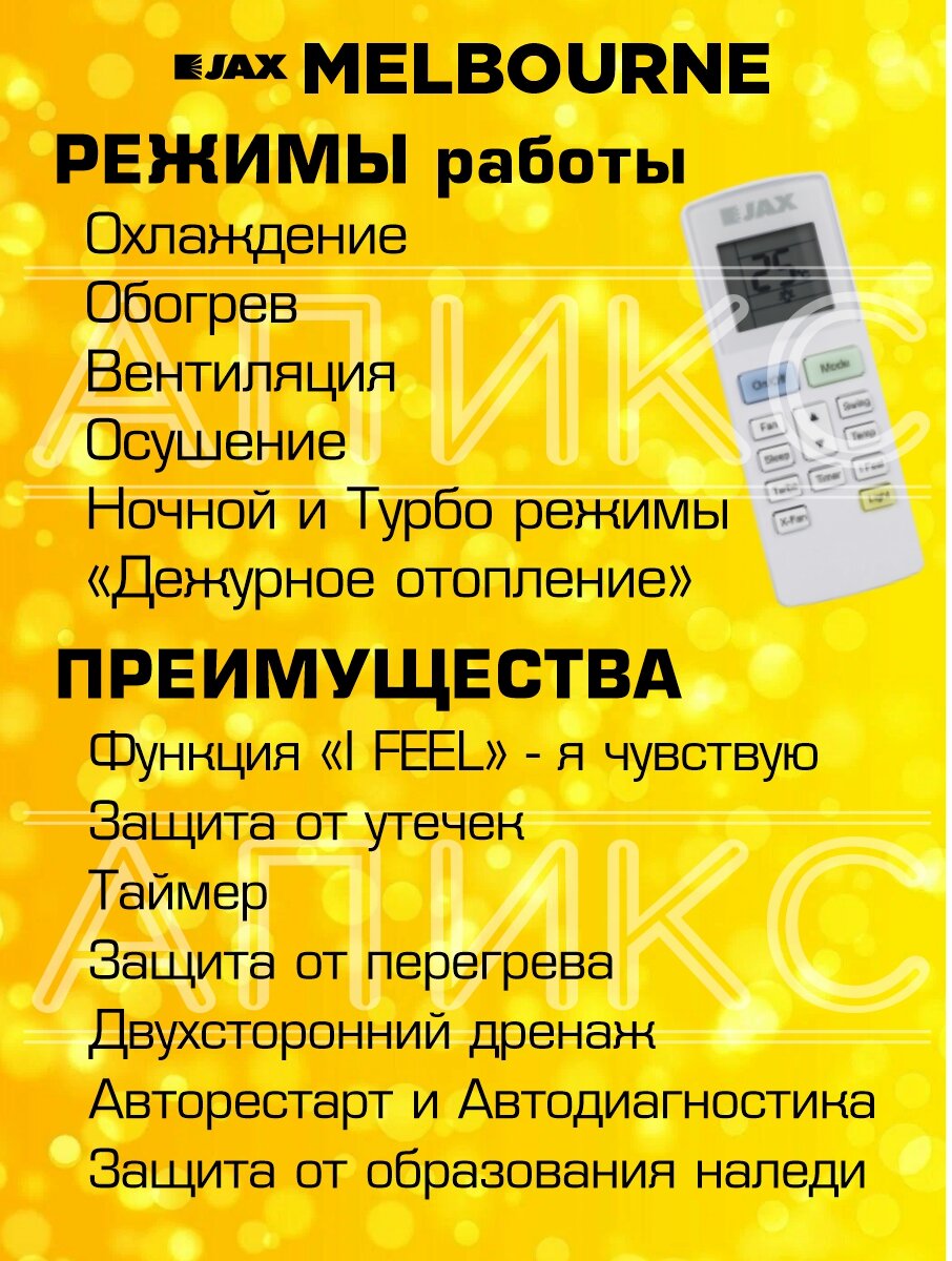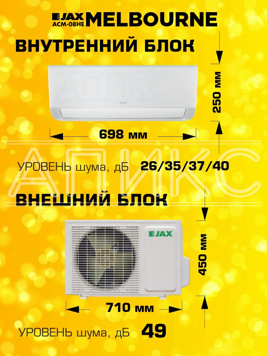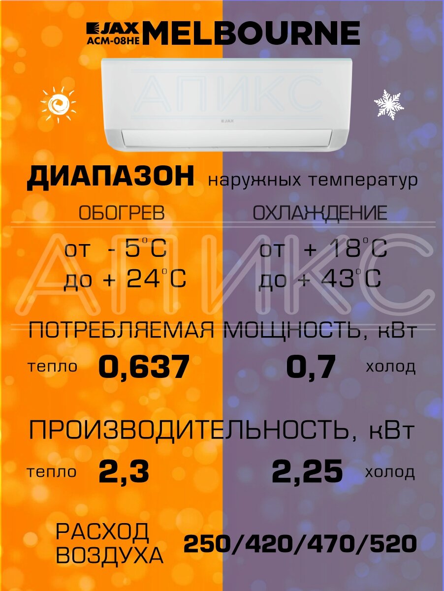 Сплит-система JAX Melbourne ACM-08HE, 7 BTU, белый, 2250/2300Вт, площадь 24м², дисплей, пульт: сравнение цен, характеристики, фото, актуальное наличие и цены.
