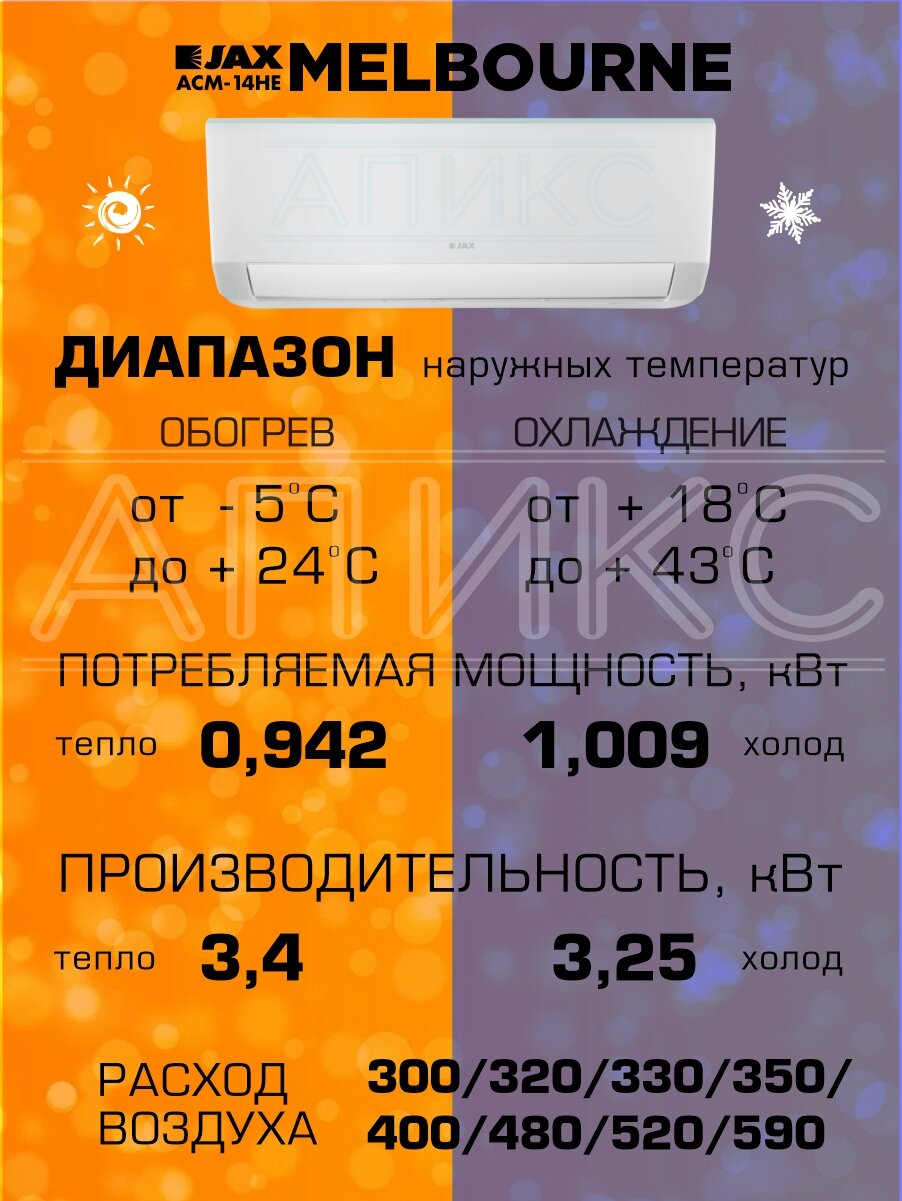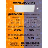 - Сплит системы серии JAX MELBOURNE максимально адаптированы для современного времени. Здесь учтены все возможные аспекты повседневной жизни. У MELBOURNEов высокий класс энергоэффективности, отлично работают при низком напряжении, можно активировать Turbo режим или «Теплый» пуск.