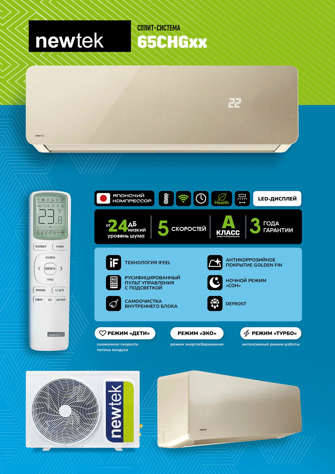 Сплит-система Newtek NT-65CHG12 золотой – идеальное решение для комфортного микроклимата в вашем доме или офисе.