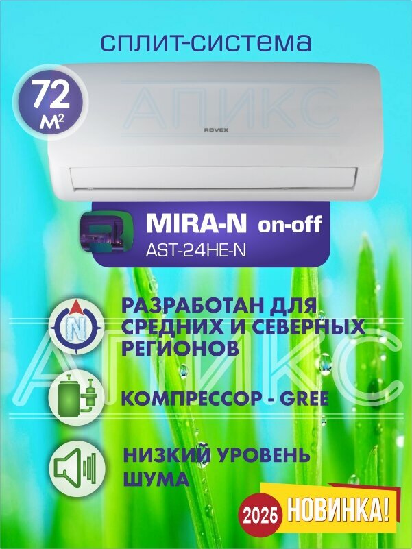 Сплит-система 24 ROVEX MIRA AST-24HE Nord бытовой кондиционер, 72 м2, on/off: сравнение цен, характеристики, фото, актуальное наличие и цены.