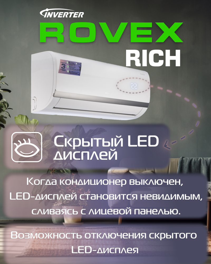 Сплит-система ROVEX RICH RS-07MUIN1, R32, инвертор, 7 BTU, площадь 21м², белая: сравнение цен, характеристики, фото, актуальное наличие и цены.