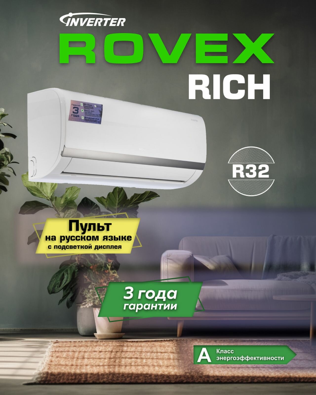 | Подробная комплектация | Внутренний блок, внешний блок, пульт ДУ, инструкция, гарантийный талон. |