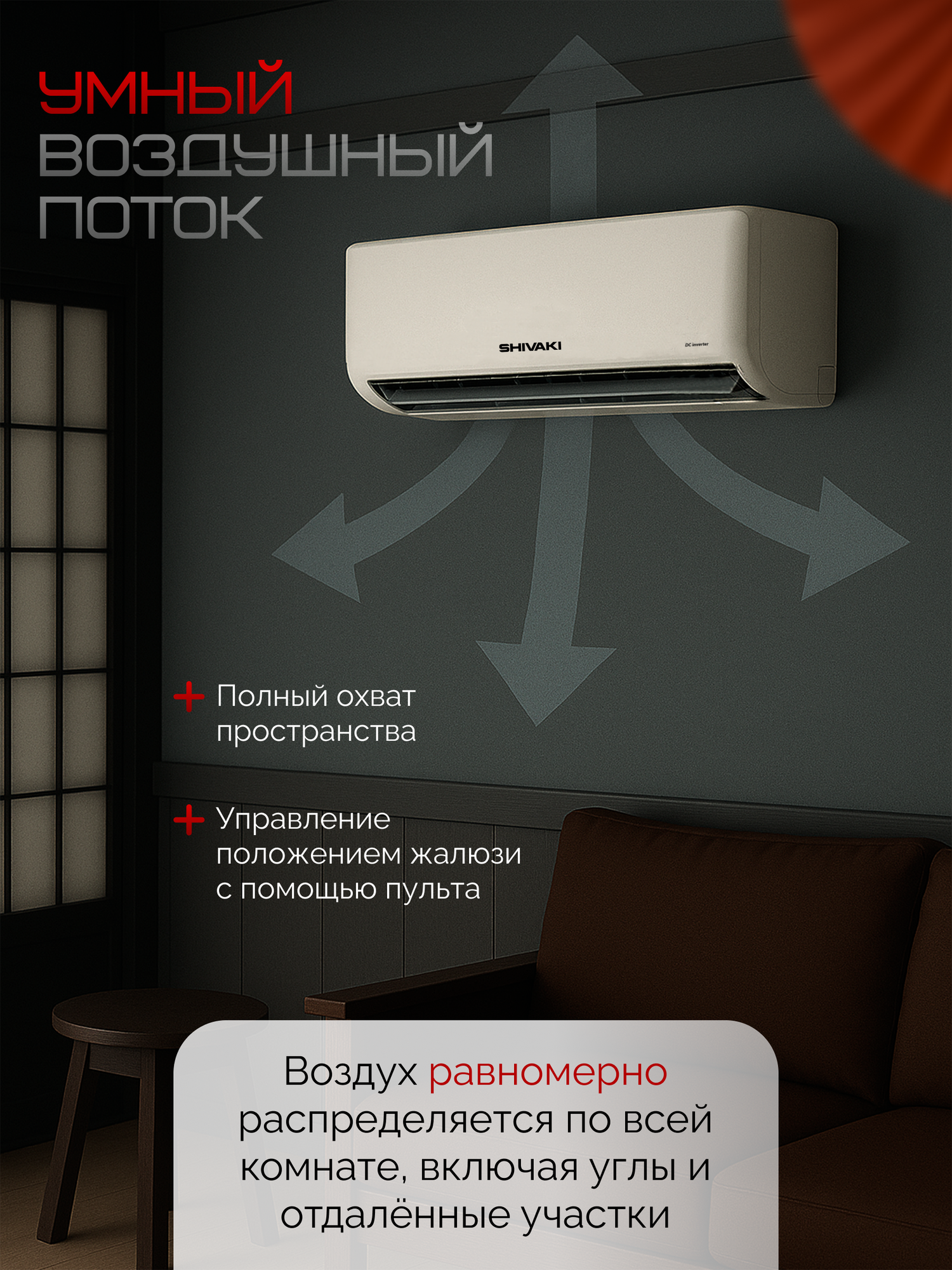 пульт ДУ, регулировка направления воздушного потока, таймер включения/выключения