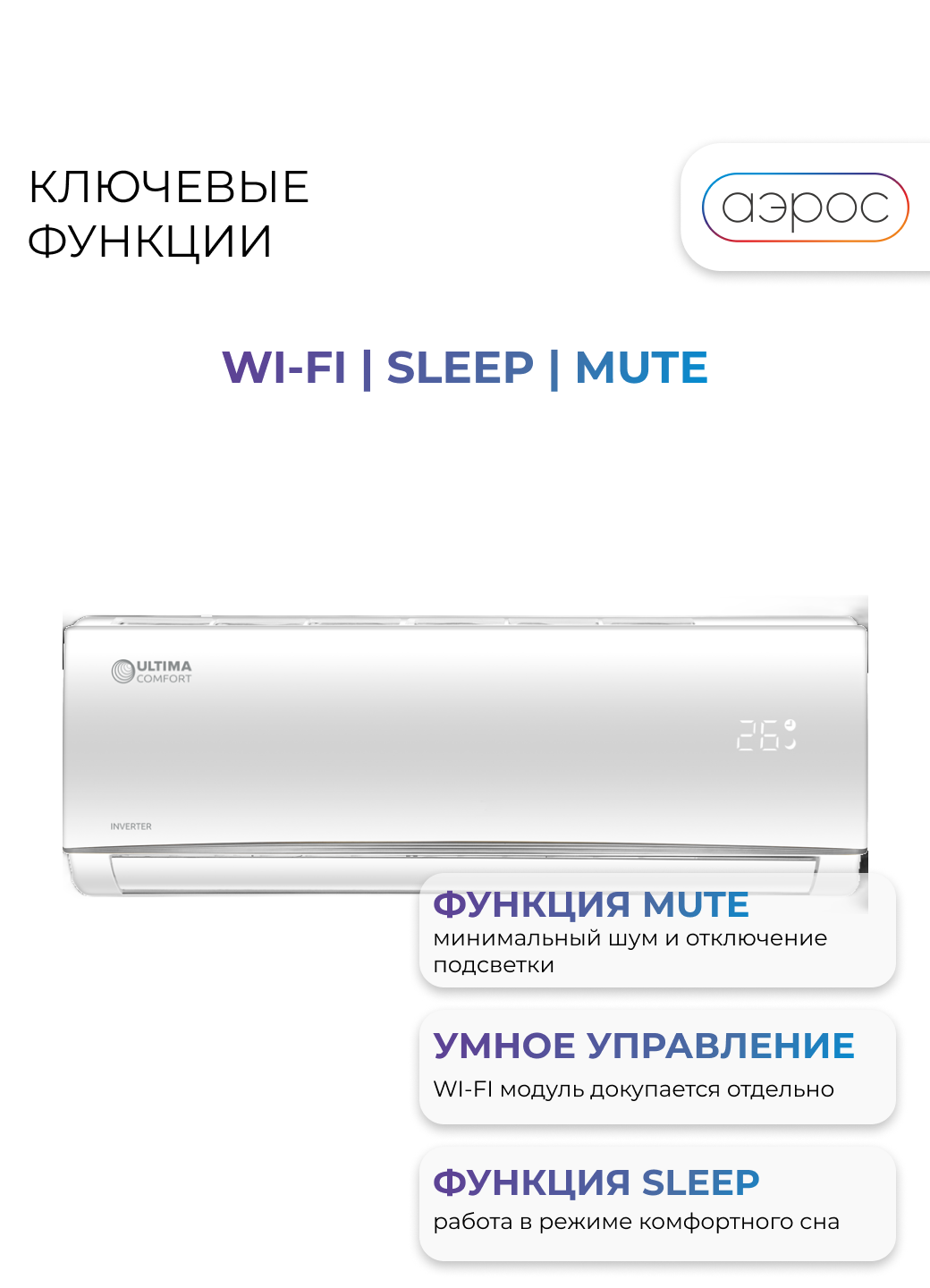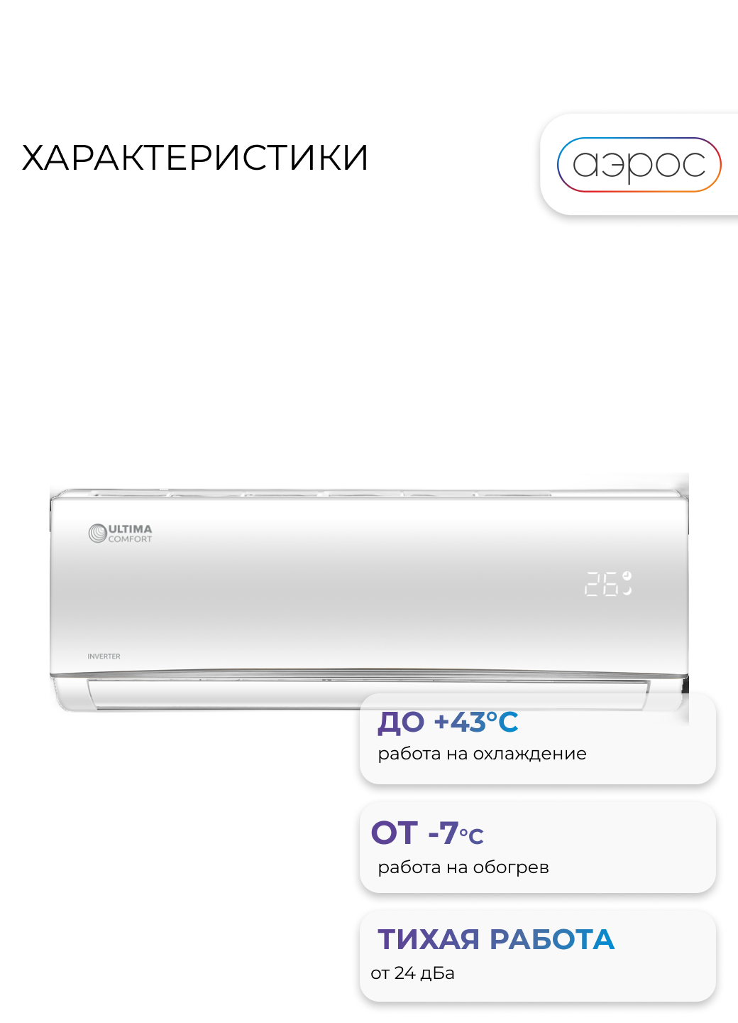 Современные и высокопроизводительные сплит-системы ULTIMA COMFORT серии ECLIPSE станут элегантным акцентом любого интерьера и идеальным решением для создания комфортного климата. Плавность линий и серебристые детали придают внутреннему блоку утонченный и изысканный внешний вид.