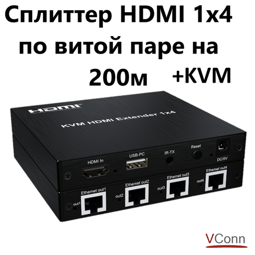 Купить Сплиттер HDMI 1х4 KVM с удлинением по витой паре на 200м /VConn/ с доставкой по всей России. Сплиттер HDMI 1х4 KVM с удлинением по витой паре на 200м /VConn/: сравнение цен, характеристики, фото, актуальное наличие и цены.