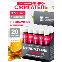 L-карнитин 3600мг, SPORTTECH, вкус апельсин, 20 ампул*25 мл, жиросжигатель, похудение, энергия, выносливость, тонус