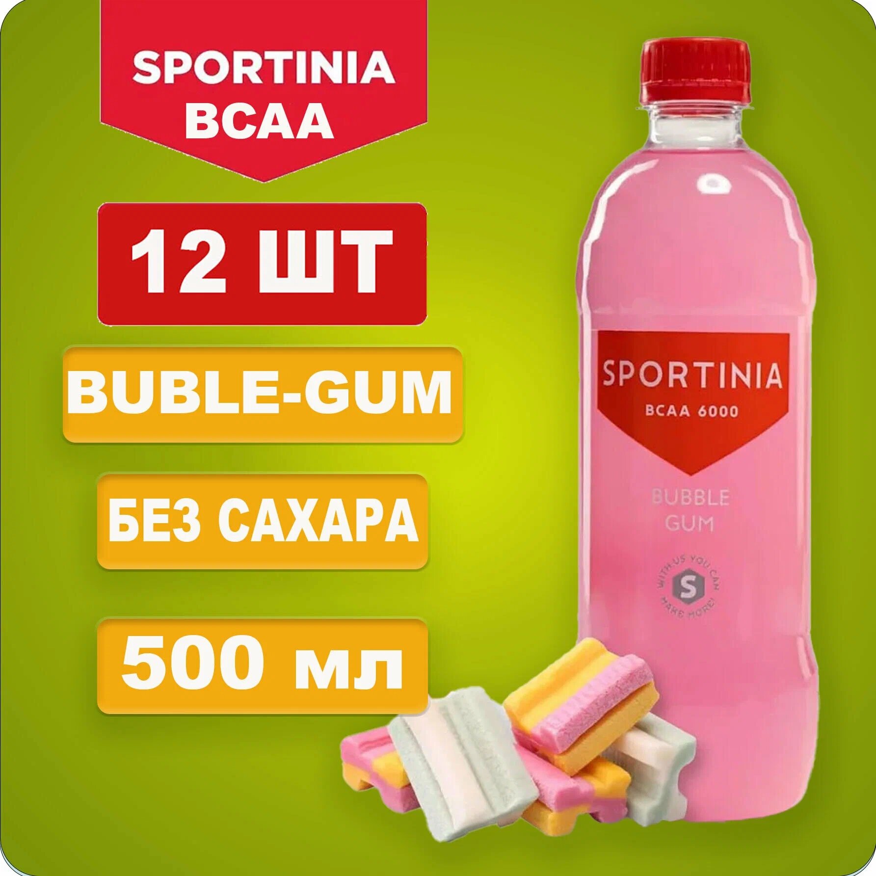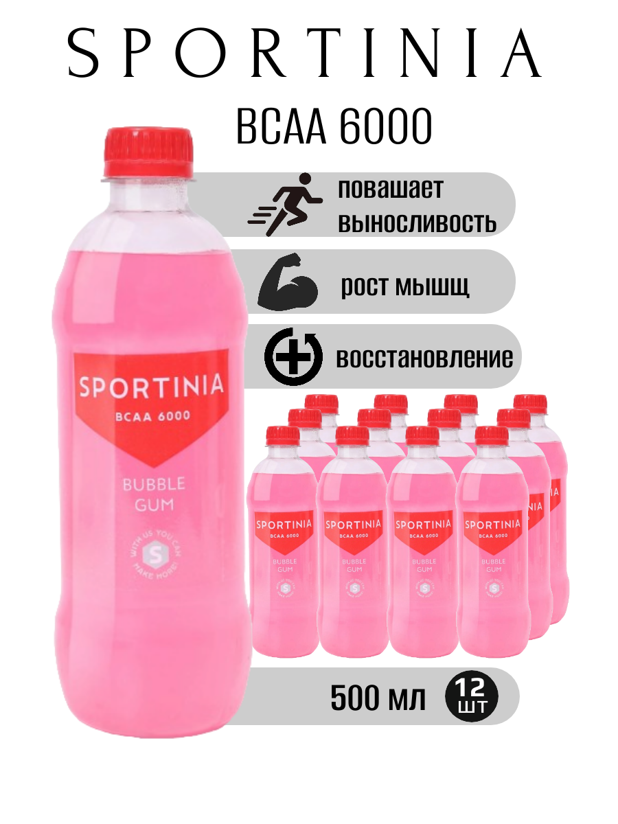 Купить Sportinia BCAA 6000 0,5л.*12шт. Бабл Гам Sugar Free Спортиния с доставкой по всей России.