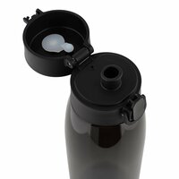 Бутылка сделана из безопасного пищевого пластика. Крышка открывается нажатием кнопки. Замок надежно закрывается и фиксируется скобой — бутылка не откроется случайно. Под крышкой бутылки установлена сетка, которая отфильтровывает кусочки фруктов и другие ингредиенты напитков. Сетку можно легко снять, чтобы промыть.